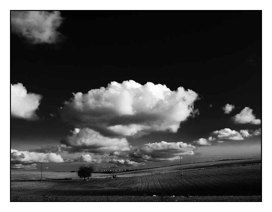 Effetto molto drammatico. Forse, dico forse, avrei tagliato in alto, escludendo la nuvoletta in alto a sx e avrei dato una schiaritina ai neri...ma forse si sarebbe persa appunto quella drammaticità sulla quale si gioca il fotogramma.