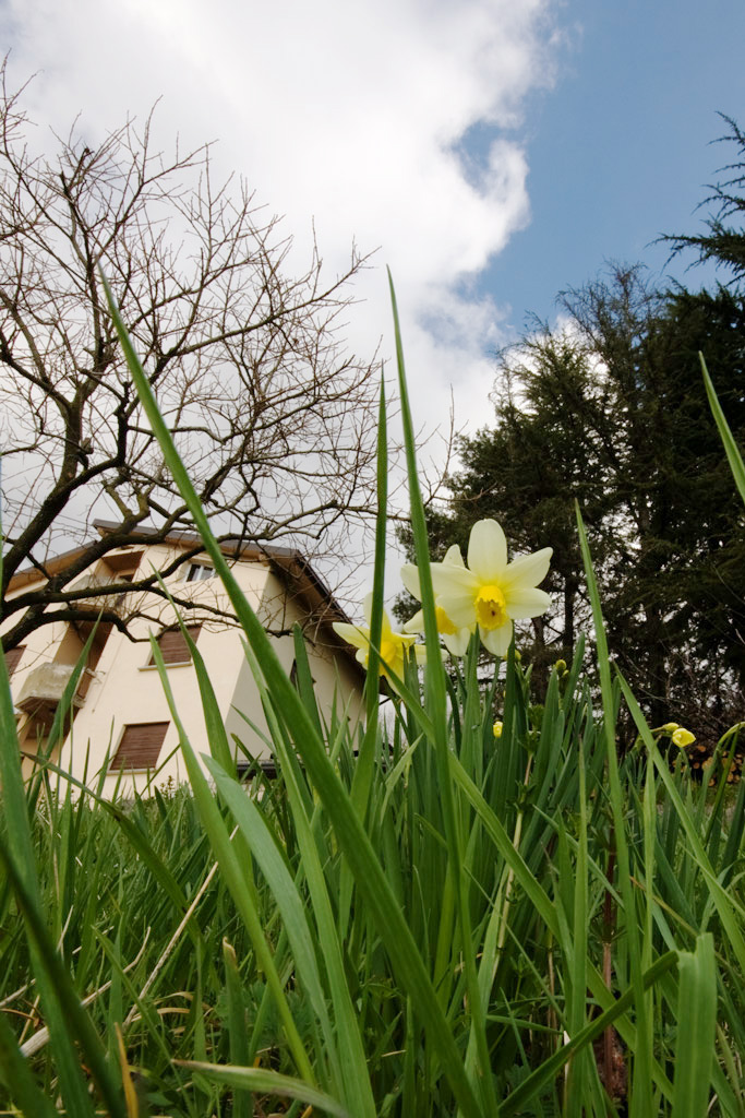 Un uso creativamente interessante della focale estrema verso il grandangolo, che però avrebbe richiesto un'ammorbidimento della luce ai vertici del fotogramma e la possibilità di focalizzare in primissimo piano il fiore, piuttosto che l'erba.