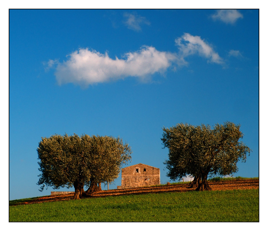 | Questi olivi e queste costruzioni mi ricordano la zona di Tarquinia ma anche certe zone del Gargano. Bei colori, caldi. Ciao Tiziano |