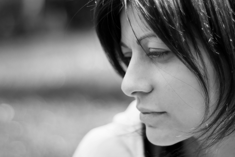 Un atteggiamento tra il malinconico ed il sereno che ben è supportato dal bianco e nero usato e dal bokeh quasi "flarizzato"...