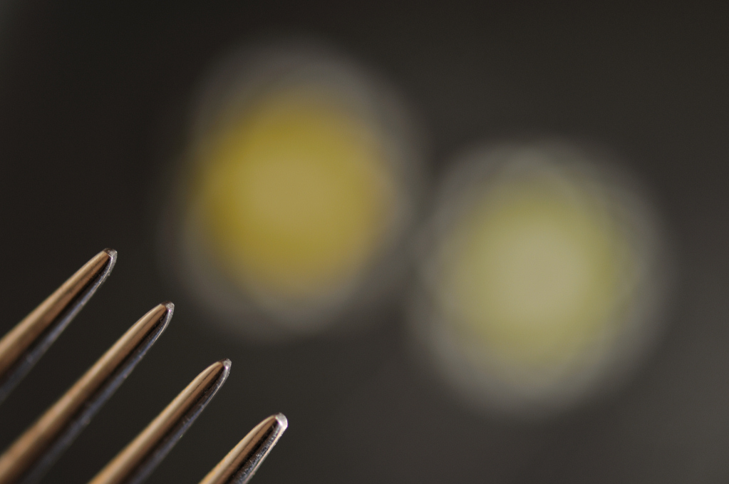 La forchetta si trova a circa 30 centimetri dalla lente dell'obiettivo,