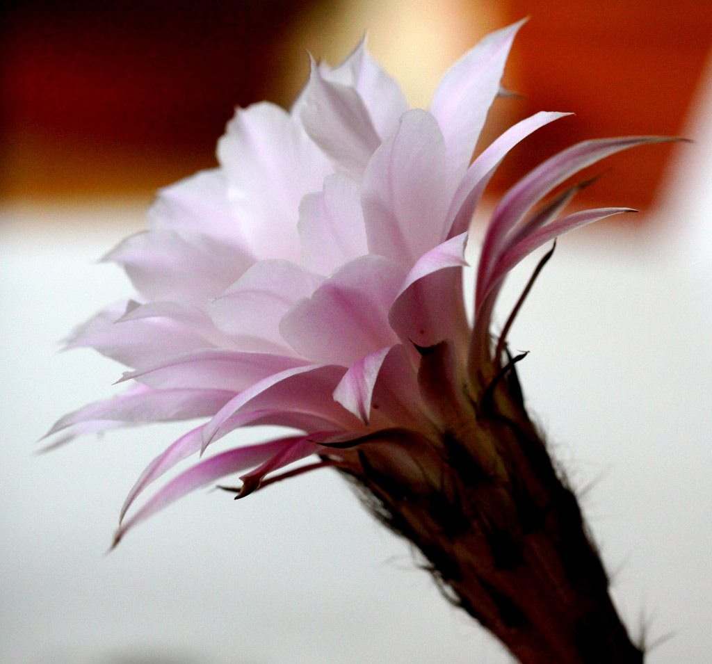 Mi è piaciuta particolarmente la visione di profilo del fiore e il contrasto dei petali in alto col fondo più scuro e in basso sullo sfondo chiaro e anche la granulosità che ne è venuta fuori con i dati di scatto espressi. Sapevo perfettamente di affrontare giudizi non proprio favorevoli, ma mi sono detto: Cambia un pò. Perchè mai, sempre le stesse cose ?