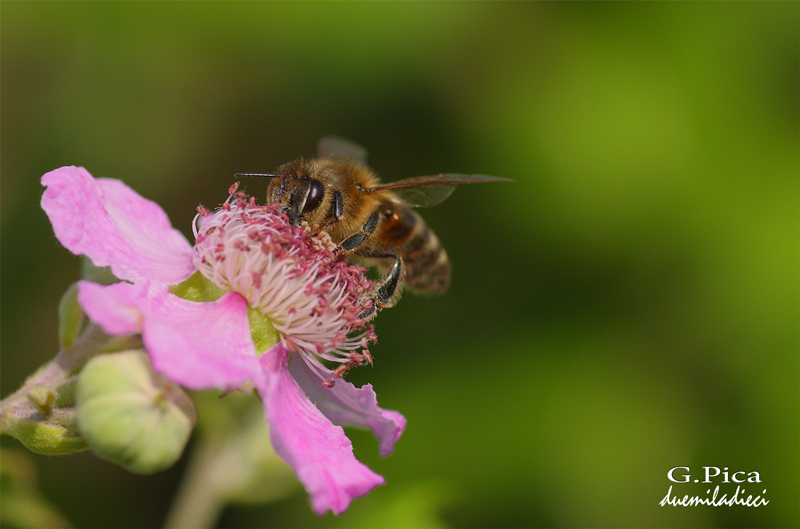 Conosco benissimo il Tamron 90mm e so che non è una scheggia nel mettere a fuoco! vedendo però lo scatto mi complimento con te per aver beccato bene questa ape in piena attività con una buona maf sulla testa!