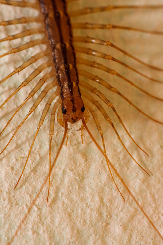 La scutigera è un centopiedi che si può incontrare all'interno nelle case, mentre corre rapidamente sui muri e sui pavimenti.