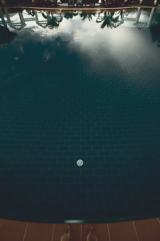 secondo te è di troppo solo la parte fuori dalla piscina o anche tutto il riflesso nell'acqua?