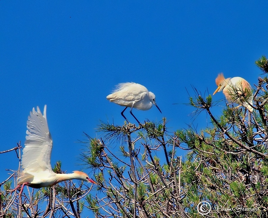 Bella foto con la giovane Garzetta e la coppia di aironi Guardabuoi che movimentano al scena e rendono gradevole la composizione. Una buona cattura,complimenti  |