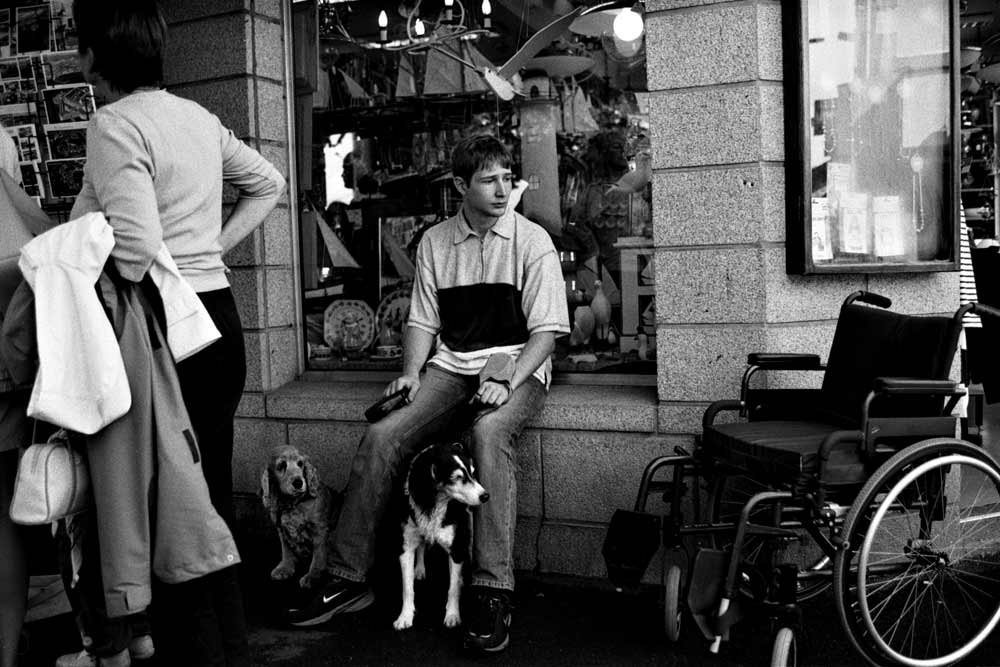 | Interessante scatto, segno di sensibilità e di occhio fotografico. Mi piace molto il contrasto tra il gabbiano sulla testa del ragazzo e la carrozzina alla sua sinistra: due simboli diversi e decisamente agli antipodi. Trovo molto giusto il modo di affrontare il tema, scottante, della diversità e dell'handicap, un modo che denota sensibilità e rispetto. Non mi pronuncio sulla tecnica in quanto sono convinto che nella street, salvo rari casi, sia un punto non nodale della fotografia stessa |
