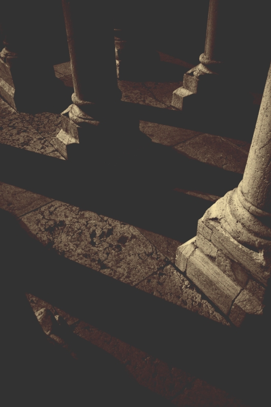 sì, sono colonne, lo scatto è stato fatto di notte e la luce che vedi è quella notturna della piazza in cui le colonne si trovano, ed è vero che c'è una patina, ce l'ho "messa" io con l'elaborazione. Sul la banalità del contenuto, rispetto la tua opinione :)