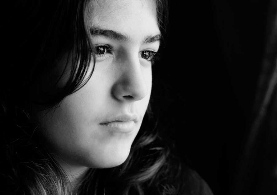 L'espressione è bella, ma il bianco e nero appare troppo contrastato: le parti scure non contengono dettagli e, se questo si può accettare nello sfondo, sacrifica invece eccessivamente i capelli.