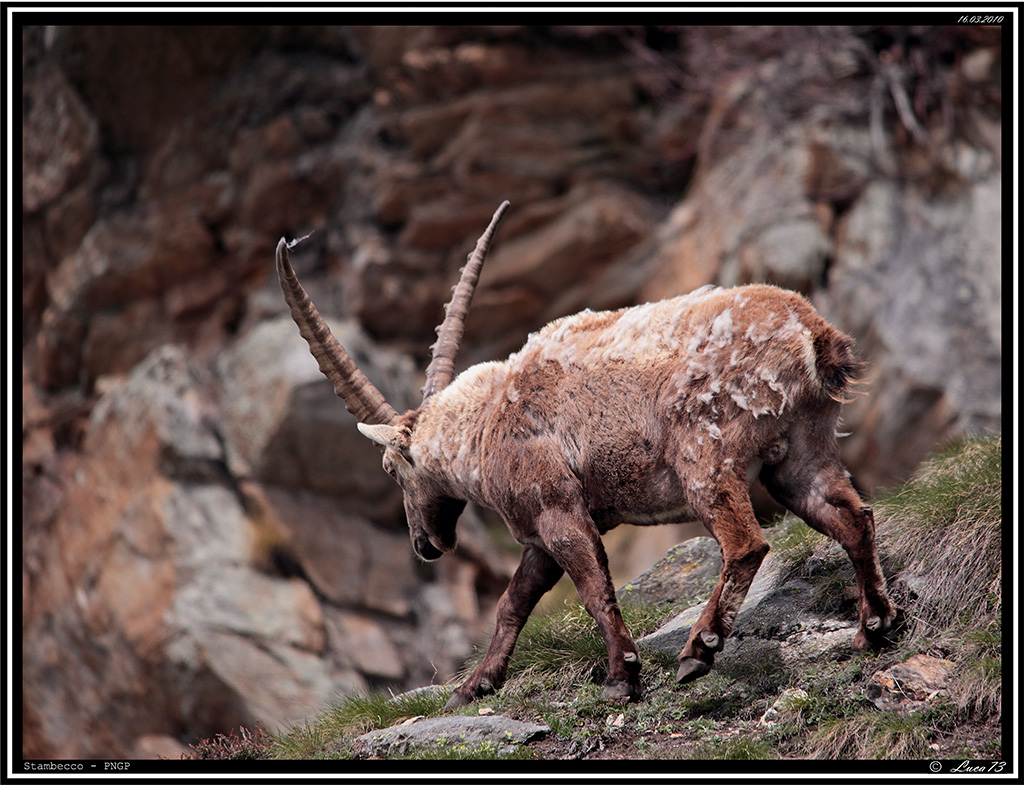 Impressionante come i colori del mantello dello stambecco siano quasi simili, a quelli delle rocce... La natura ci stupisce ogni volta con un'infinità di colori e tonalità. Buone foto, complimenti per quest'immagine, saluti Salvatore.