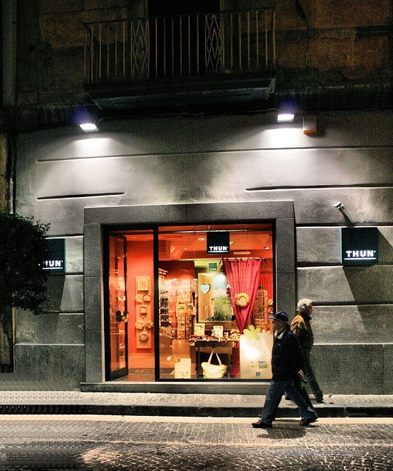 Piacevole il forte contrasto cromatico fra l'interno del negozio e l'esterno...