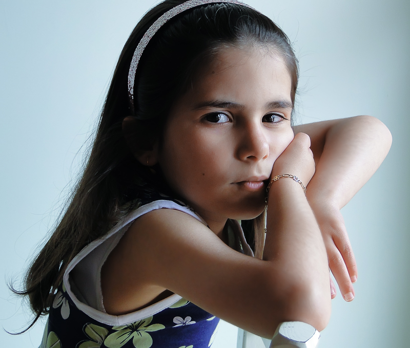 La posa e il taglio non sono male ma secondo me è troppo netta la differenza fra luce e ombra sul viso della bimba, ruotando di poco il volto verso la finestra avresti ottenuto naturalmente una luce più omogenea.