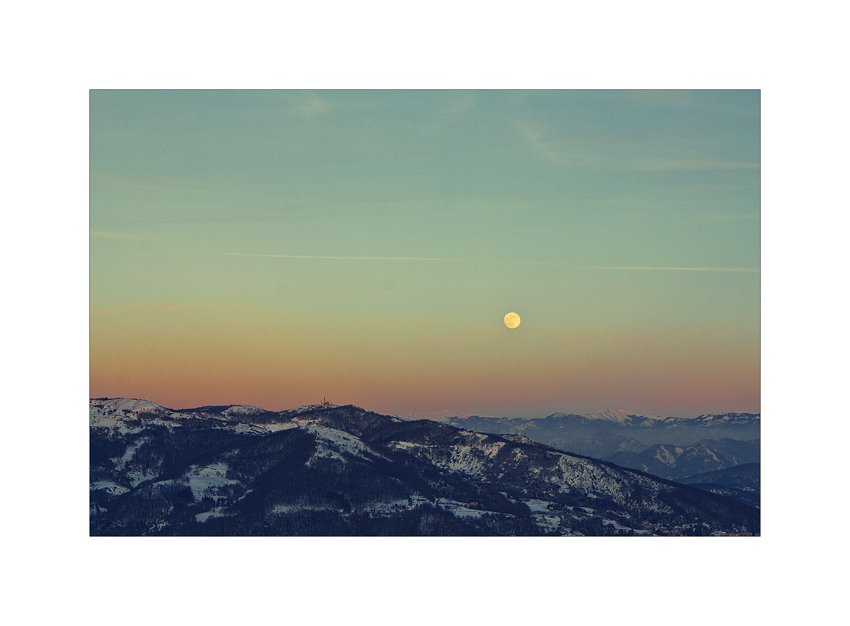 Una composizione semplice quanto elegante,illuminata dall'oro del pianeta immerso in un variegato passaggio tonale ad libitum.