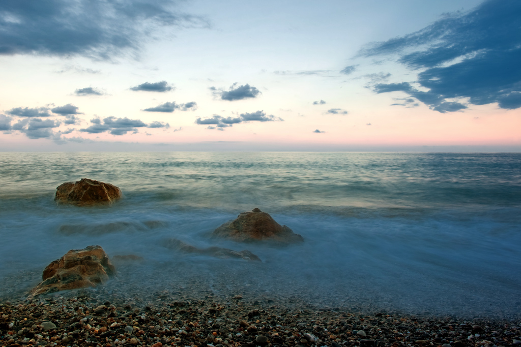 Mare mosso e setoso, MaF sulle rocce e buona luce sono sempre un cult della fotografia.
