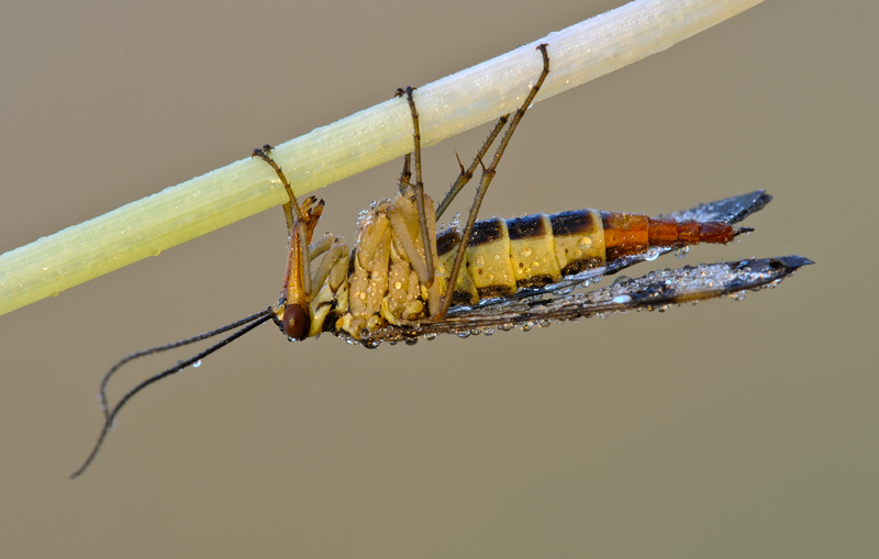 attesa del sorgere del sole per questa mosca scorpione, la coda è rilassata e non nella tipica posizione da "scorpione"...