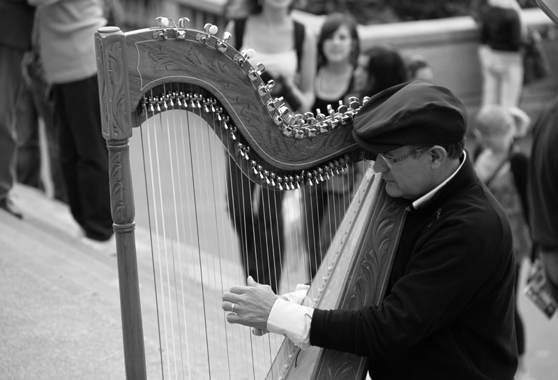 La foto così come la proponi non può essere considerata street.... se si vuole fare street con artisti di strada come lui quello che si dovrebbe fare è cogliere qualche attimo particolare o di interazione e sguardi con i passanti... in questo caso comunque non mi dispiace come foto... però se volevi stringere sul soggetto sarebbe stato giusto provare anche come dice sms con un taglio verticale che comprendesse tutto lo strumento... e per quanto ne posso capire io il bn mi sembra abbastanza ben fatto