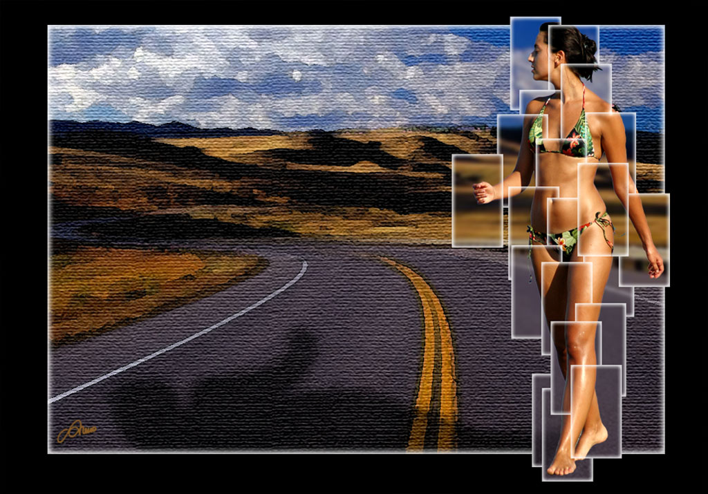 In realtà la ragazza era in spiaggia, ma quando l'ho vista estrappolata dal suo contesto ho pensato subito ad una strada desolata, non so perchè Smile
