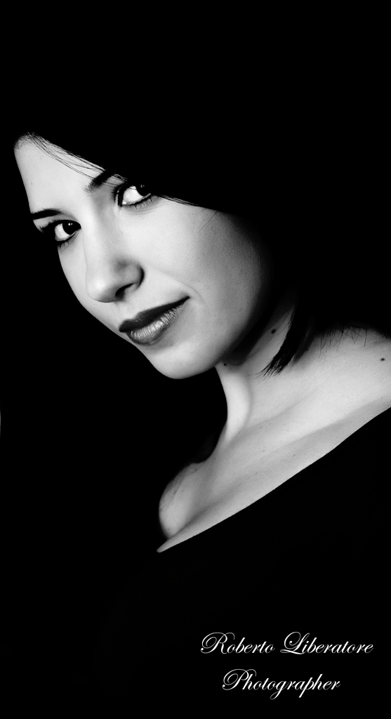 Mi piace molto. Da tutto quel nero, sbuca questo splendido volto e sguardo magnetico come un raggio di luce!