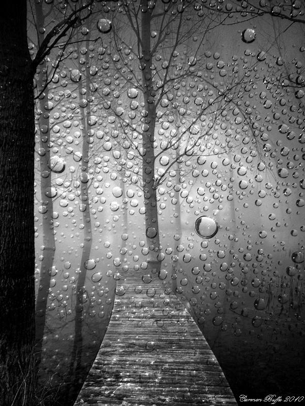 a me piace molto, hai avuto una buona idea; si avrebbe voglia di percorrere quella passerella, ma in realtà c'è l'ostacolo delle gocce che richiamano la presenza di un vetro interposto tra noi e il paesaggio.