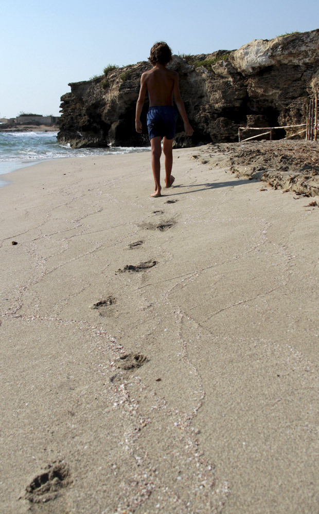 Ho proposto due versioni una a colori una B/N con l'eliminazione dei disturbi e un piccolo restringimento a sinistra, una maggior e luce e l'eliminazione della prima impronta molto vicina al bordo foto.....secono me meglio uno spazio sabbia che evidenzi la spiaggia...