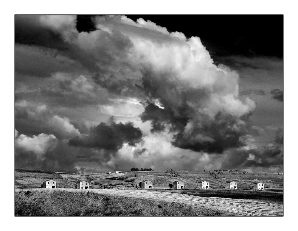 Splendidamente drammatico quessto paesaggio, ottima la definizione dei campi e delle case