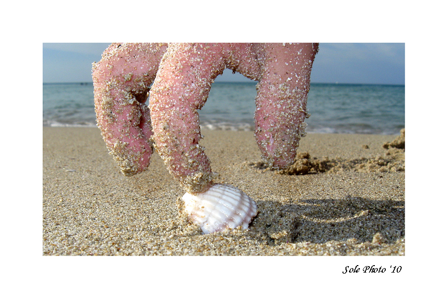 Interessantissima questa foto, fa apparire la manina come se fosse quella di un gigante e anche il mare appare piccolo!