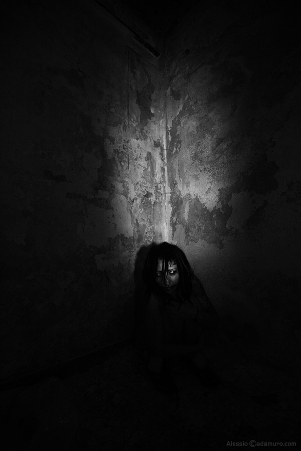 Scuro e sporco, abbandonato contesto,neri profondi, luce spot che concentrata in un unico punto ma col soggetto che ne è solo lambito e quindi nasce una sensazione di squilibrio .