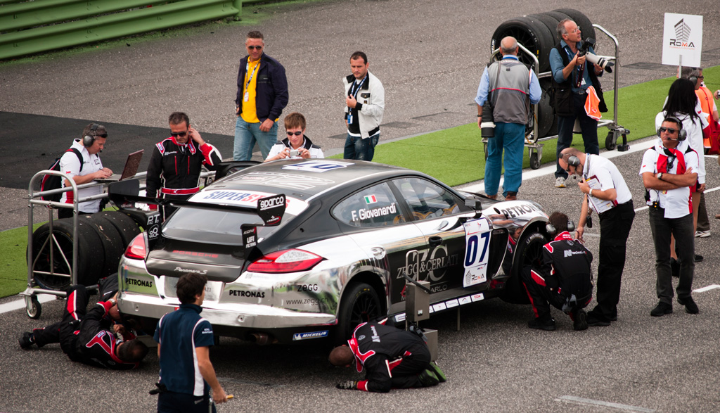 ... se era accompagnata da altre foto poteva stare in SPORT .. ma buttata cosi non ha senso, di sportivo ha solo l'auto da corsa ferma sui pistoni idraulici ...