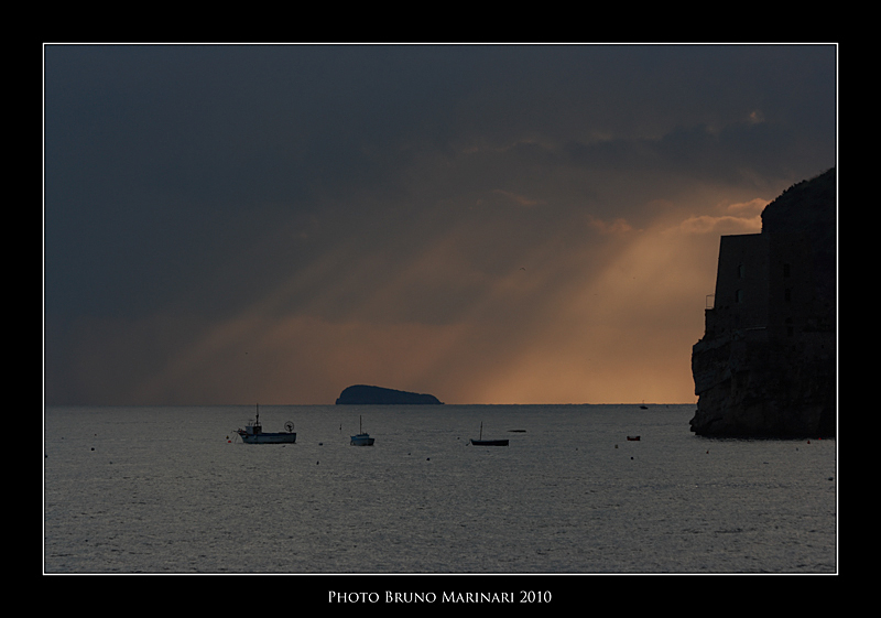 dunque....semplice e gradevole, ma percepisco l'immagine un po' buia. Troppa uniformità tra i vari elementi: cielo, mare e luce. L'immagine risulta essere poco contrastata.