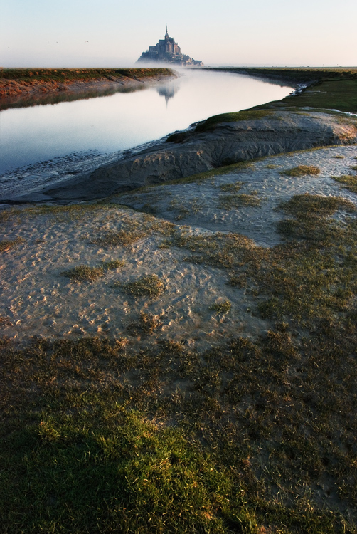 la foschia sembra rendere Saint-Michel sospeso a mezz'aria....atmosfera da sogno