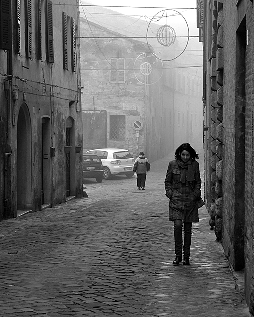 Finite le feste, luminarie spente, freddo nebbia e umidità, a passo veloce verso casa... bella foto Ok!