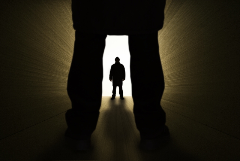 L'interiorità del conflitto è ben resa dalle stisce laterali e sul pavimento, che danno un senso di claustrofobico e di chiuso.