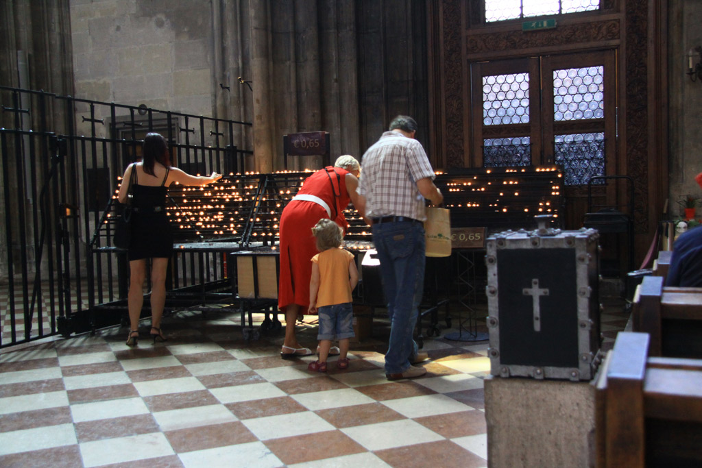 Ben riuscita si...magari sul piano compositivo la centralità dei protagonisti rende un pò scontato la scena, ma tagliarla a destra o sinistra non cambia poi molto il senso della storia....i desideri, le delusioni, le preghiere, di solito si richiede alle donne un abbigliamento decoroso per entrare in un luogo di culto, mi è capitato di vedere all'esterno di molte chiese dei divieti, nell'ultima a Roma sul cartello campeggiava il disegno di una ragazza giovane con una minigonna e una camicetta , entrambe molto poco castigate. Sopra di essa una scritta chiara e a lettere maiuscole: no.