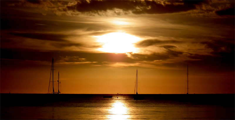 Quoto e inoltre avrei spostato il sole al tramonto a destra in modo da decentrarlo eliminando anche la vela sulla destra e incudendo le altre che forse cambiando il punto di presa sarebbero state illuminate anche dal riflesso dell'acqua  |