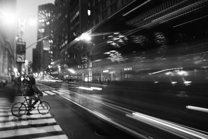 L'istantanea di andreaboni nonostante le sue imperfezioni riesce a trasmettere un buon ritmo ed una buona atmosfera; non è semplice tirare fuori qualcosa di valido da un punto di vista fotografico durante le ore notturne. L'autore ci riesce abbastanza bene utilizzando un tempo estrusivo e una prospettiva di luce che restituisce la vita veloce e raggiante di una grande metropoli, i suoi ritmi frenetici, ricchi di interessi e bisogni che non conoscono orari. Chi si ferma è perduto per sempre. Sono presenti i difetti già evidenziati dovuti all'utilizzo di tempi di scatto elevati, senza la precauzione di avere utilizzato un supporto stabile per la fotocamera. A questi si somma l'eccessiva sovraesposizione del lampioni sulla sinistra che disorienta l'osservatore conducendolo nell'angolo in alto a sinistra in netta dissonanza con quelle che erano le linee di forza della composizione. Già con un taglio sulla parte superiore la fotografia migliora.