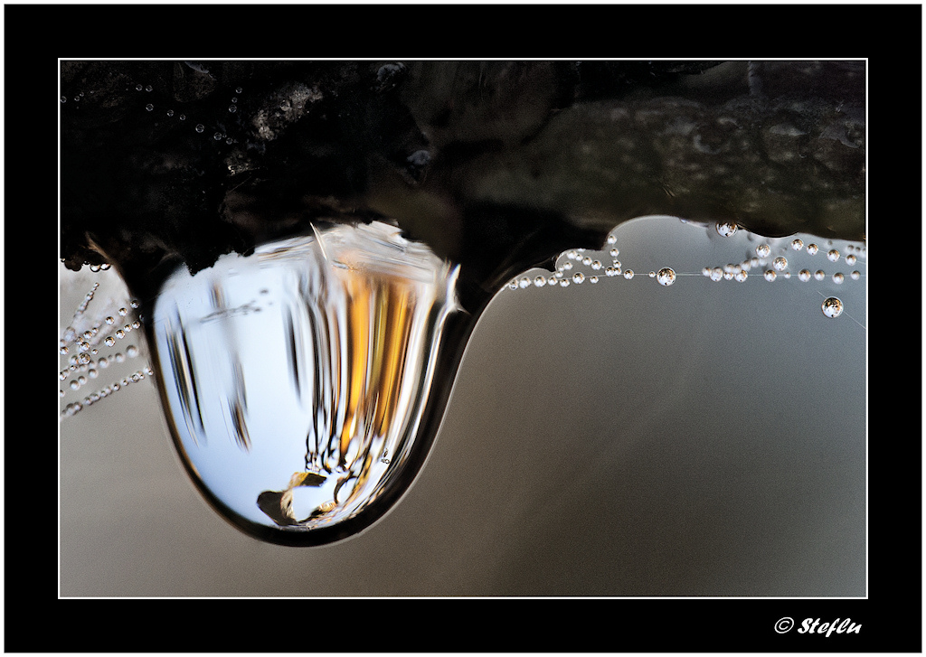 Scatto originale e curioso, belli i giuochi di luce nella goccia, si notano degli artefatti che circondano la goccia e nelle gocce minori, lo sfondo è rumoroso, sarebbe migliore se pulito, ciao Elio