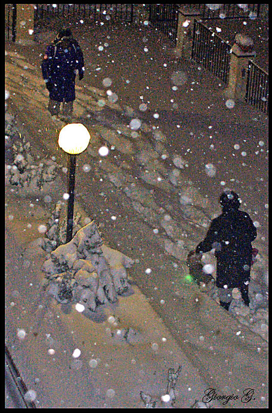Sisto,Luigi,Franco,grazie per la visita ed il commento..cosa dire..la foto presenza delle carenze tecniche..ma a me guardandola,mi ha ricordato il mondo magico delle favole,un po piccola fiammiferaia e simili,dove l'atmosfera,i personaggi,la neve,si prestavano alla creazione delle storie più varie.Finisco visto il periodo,facendo gli auguri di buon anno a tutti e che a quelli della mia età(barba bianca)porti tanta serenità,mentre ai noistri figli e nipoti delle prospettive di vita un po più rose di quelle attuali.