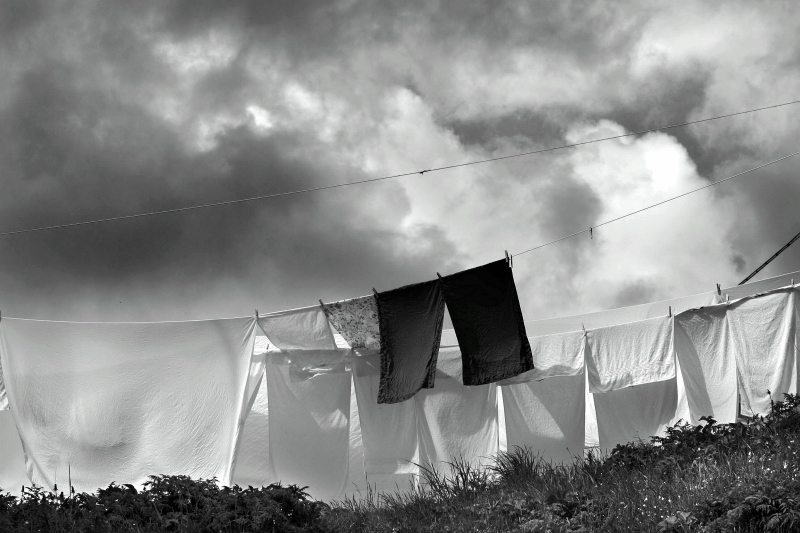 Che concretezza quelle bianche lenzuola. Il vento le gonfia e da loro forma e vita non propria. Fanno il verso alle nubi e sberleffi a quelle pezze scure per poi lasciar cadere briciole candide sul prato fiorito.