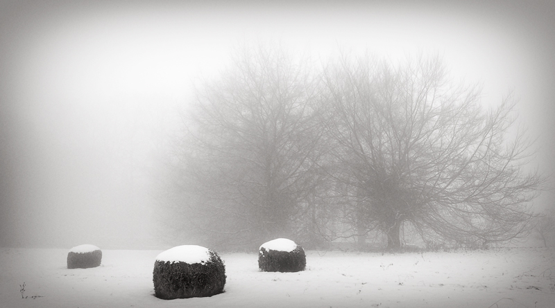 La compo è ottima la vignettatura non mi disturba affatto poi le Rotoballe di paglia con la neve sopra è il massimo...anche io ho qualche scatto simile...ma questa tua interpretazione è al Top...complimenti ciaoooooooooooo _________________ Buon scatto a tutti.......Gianni