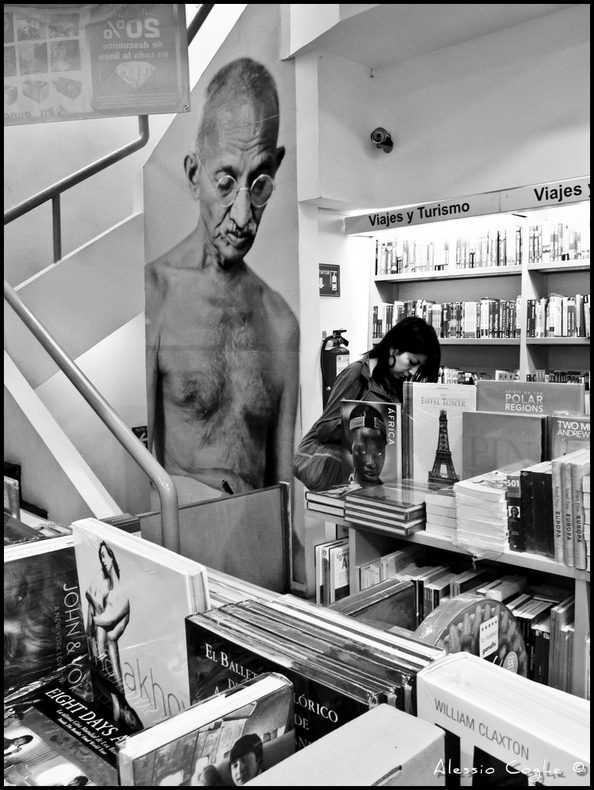 Gandhi che dall'alto volge il capo verso tutti quei paesi illustrati sotto di lui è molto significativo. Mi piace.  |