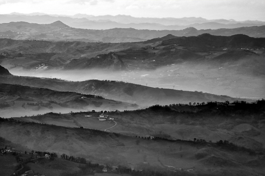 Bello il susseguirsi infinito dei piani e le valli nascoste dalla bruma, mi piace