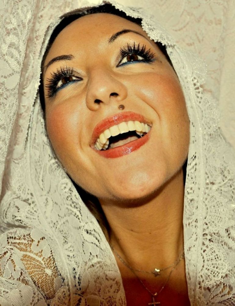 Molto bella e spontanea anche se nei toni caldi; eliminerei i riflessi di luce su mento, naso e zigomi ed il filo di saliva dal dente di sin.-