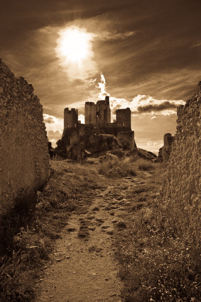 La cosa che mi ha colpito con questa tonalita' e' l'effetto "fumo" che assume la nuvola dietro la rocca.