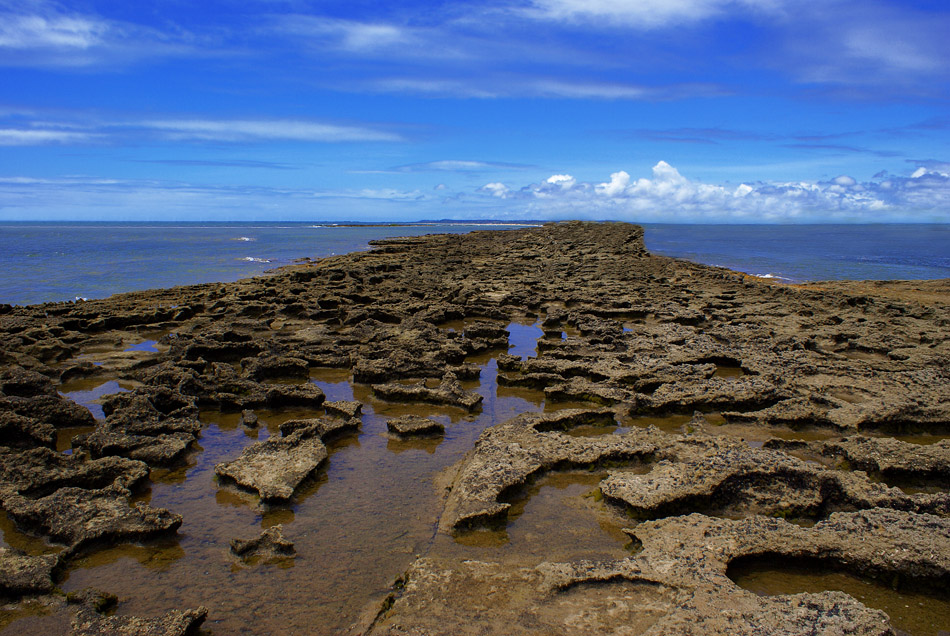 Il motivo del serpentone eroso guida l'occhio all'orizzonte marino.