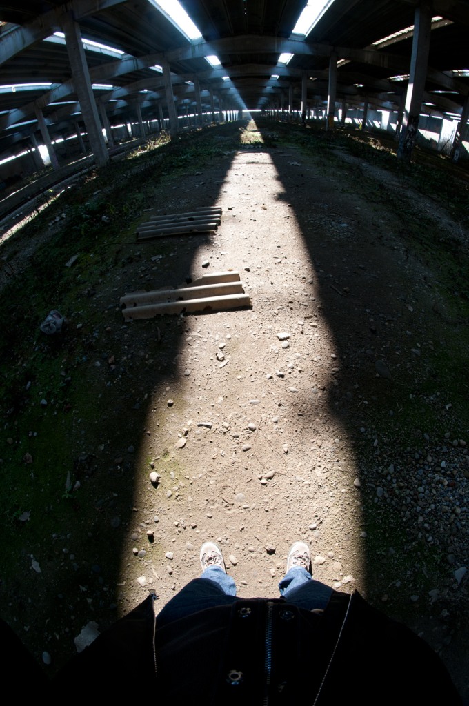 questa è la lama di luce che entrava in quel capannone sulla quale ho posato i piedi. Anzichè a 8mm qua ho usato un 80-200.