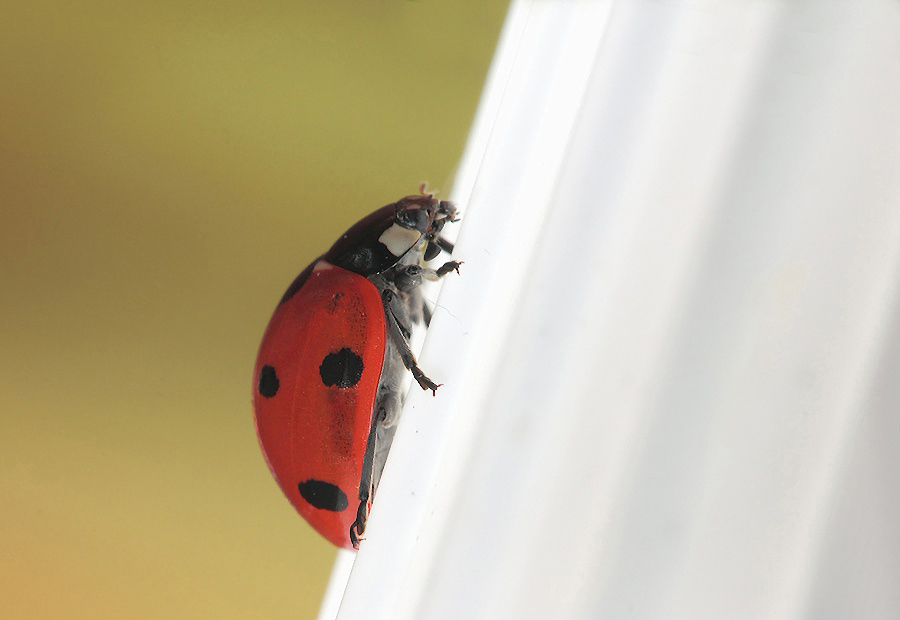 Mentre prendevo il caffè si è posata su un contenitore di plastica che era sul tavolo.