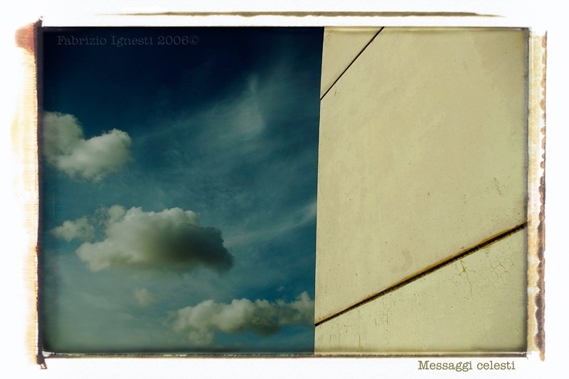 Raddrizzerei il muro. Lo scatto non mi dispiace affatto, le nuvole così soffici e dal contorno articolato contrastano bene con la parte murale solida e lineare.