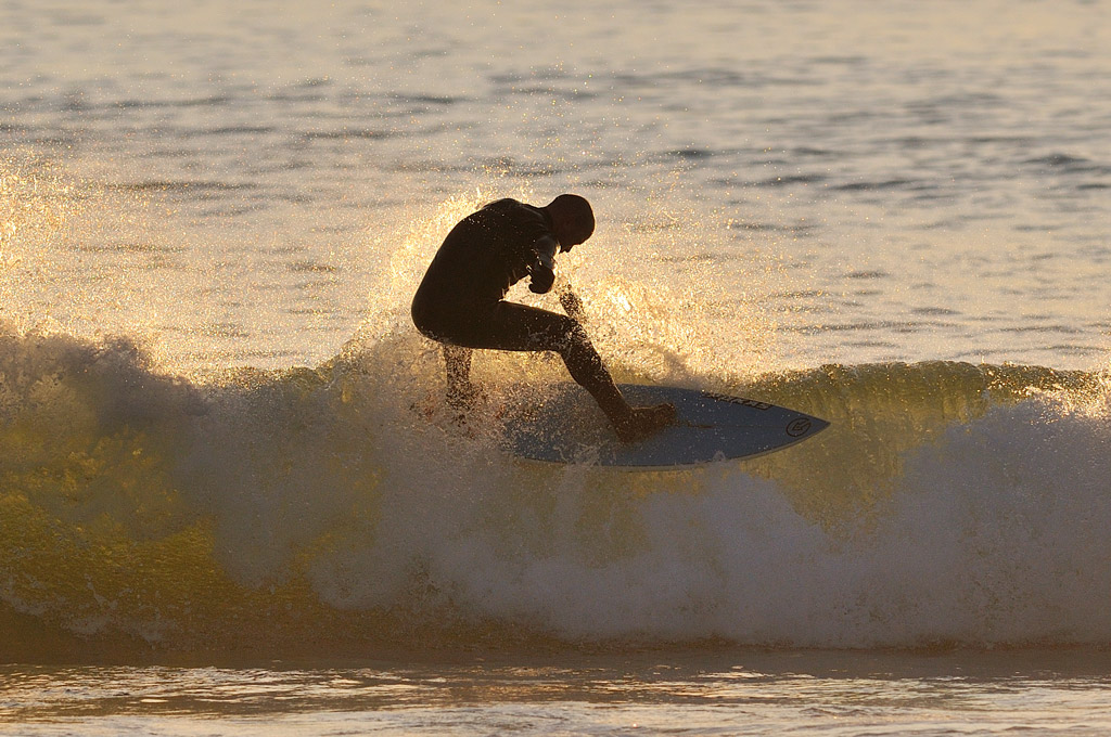 Peccato solo per il soggetto centrale, un po decentrato sarebbe stata una bella immagine... forse l'onda è piccola, ma la luce spacca, e la leggibilità sulla silhouette è una chicca!