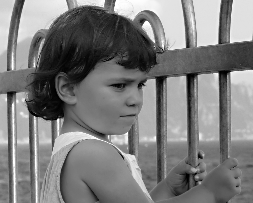 In effetti la ringhiera più sfocata sarebbe stata meno invasiva, se possibile in questi casi apri sempre il diaframma al massimo possibile, per cercare di isolare al massimo il viso, grazie al fatto che gli altri piani vengono sfocati e quindi risultano meno in evidenza.