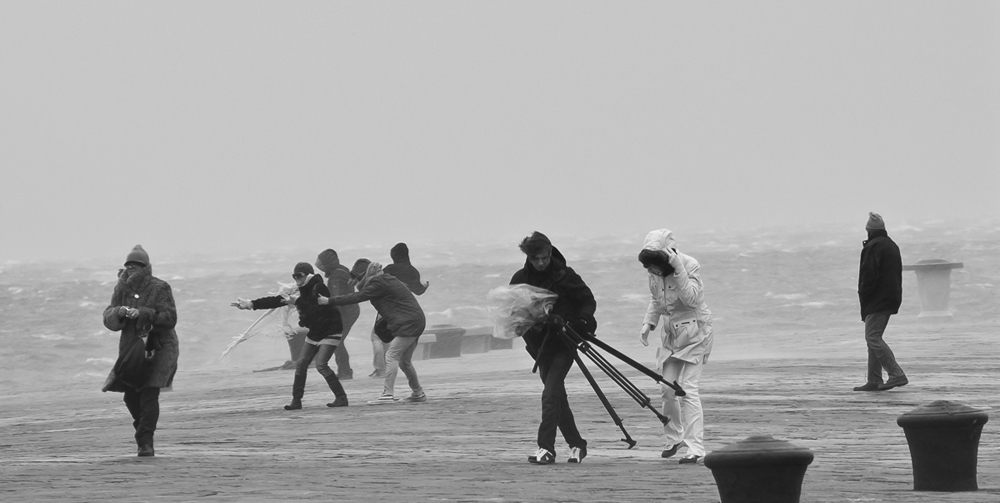 ......ottima immagine che spazia in diverse discipline fotografiche... si porta dietro l'inevitabile emozione dell'essere li in quel momento a lottare contro il fortissimo vento, ma è sopratutto paesaggio in quanto questo l'immagine racconta. Il paesaggio che racconta è un paesaggio difficile da vivere e sopratutto difficile da fotografare, difficile restituire la sensazione realmente vissuta in quel momento semplicemente inserendo onde infrante contro gli scogli. Ci sei riuscito in modo efficace e immediato, il racconto viene percepito subito da chi osserva lo scatto e aver ripreso l'uomo che a fatica sposta il treppiede aumenta l'interesse da parte di chi osserva suggerendo la domanda " ma se lui è stato costretto ad andarsene, quanto è stato difficile ottenere questo scatto?"